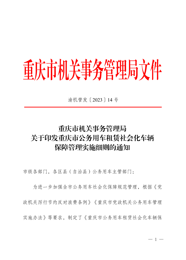 《重庆市公务用车租赁社会化车辆保障管理实施细则》(渝机管发〔2023〕14号)