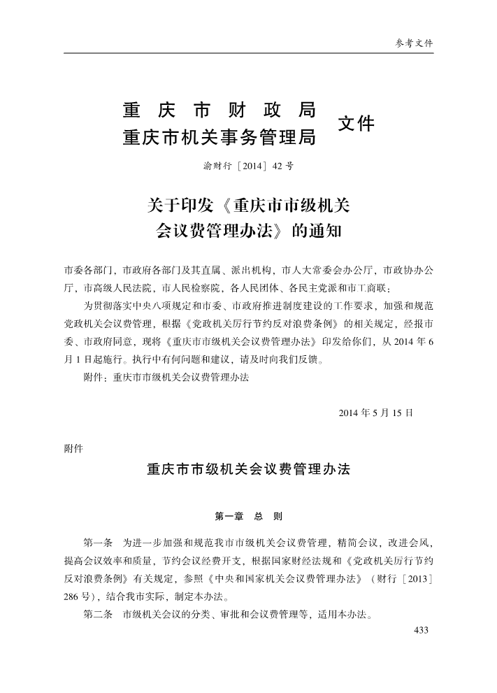 《重庆市市级机关会议费管理办法》(渝财行[2014]42号)