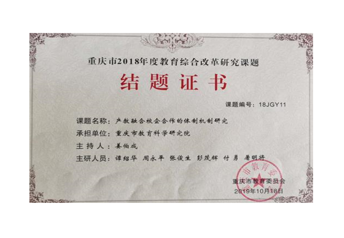13.重庆市教育综合改革研究课题《产教融合校企合作的体制机制研究》结题