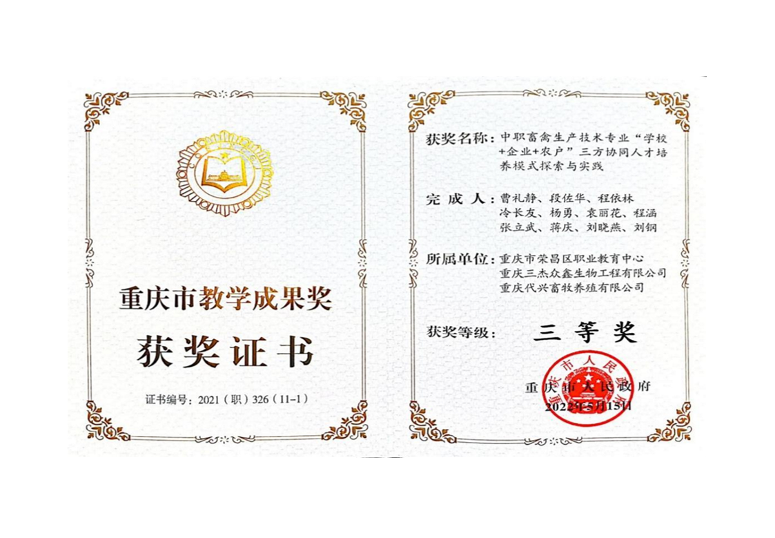 8.重庆市教学成果三等奖(重庆市人民政府)