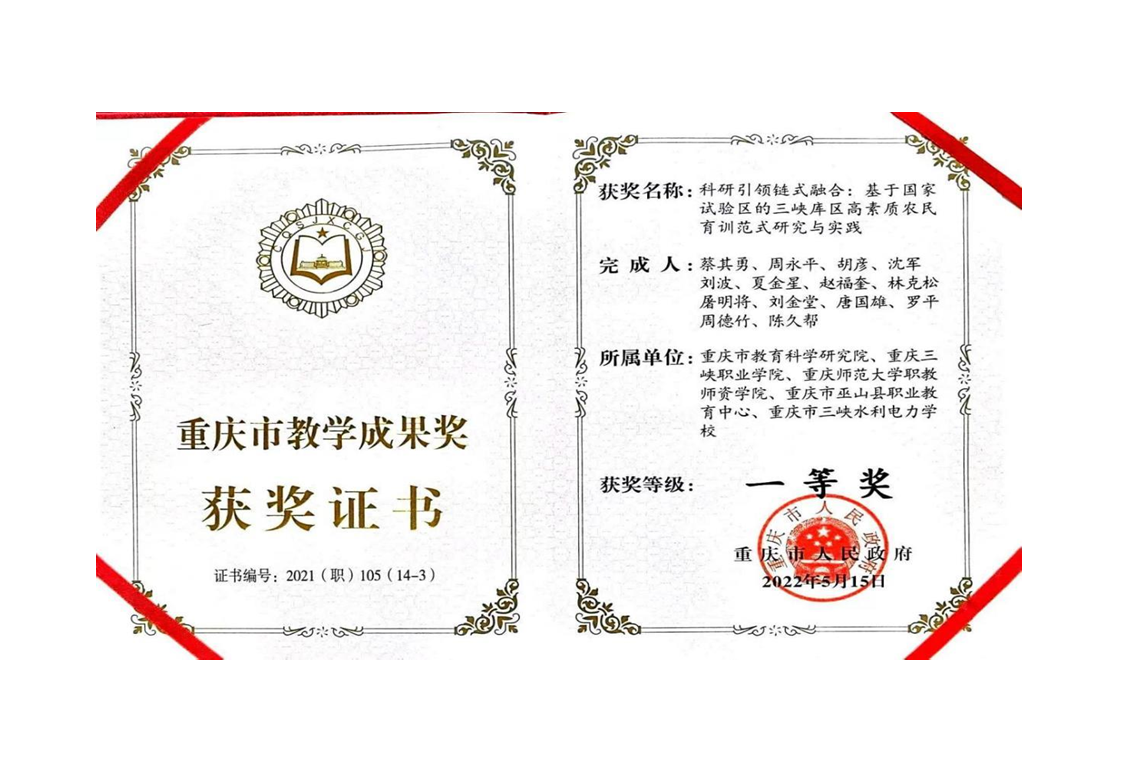 5.重庆市教学成果一等奖(重庆市人民政府)