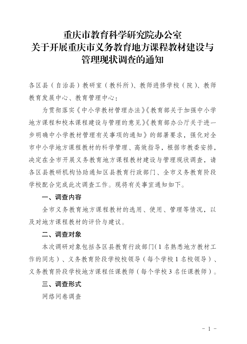 利乐娱乐 办公室关于开展重庆市义务教育地方课程教材建设与管理现状调查的通知