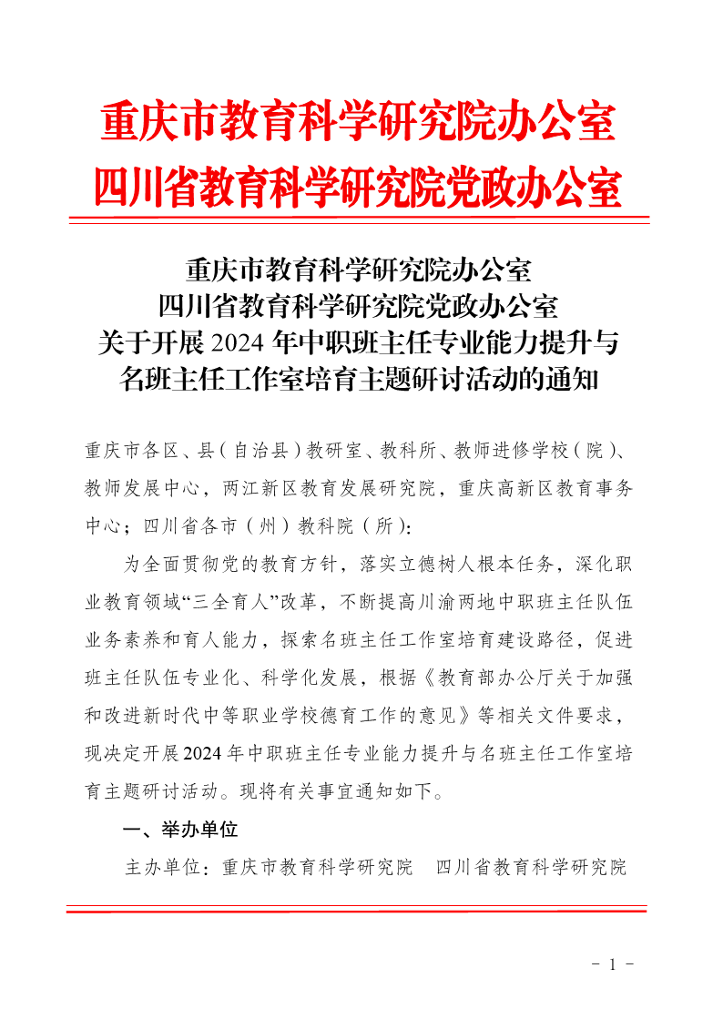 利乐娱乐 办公室四川省教育科学研究院党政办公室关于开展2024年中职班主任专业能力提升与名班主任工作室培育主题研讨活动的通知 作者: 来源: 发布时间:2024年03月28日 点击数: 次 【字体:小 大】 分享到: 【打印正文】
