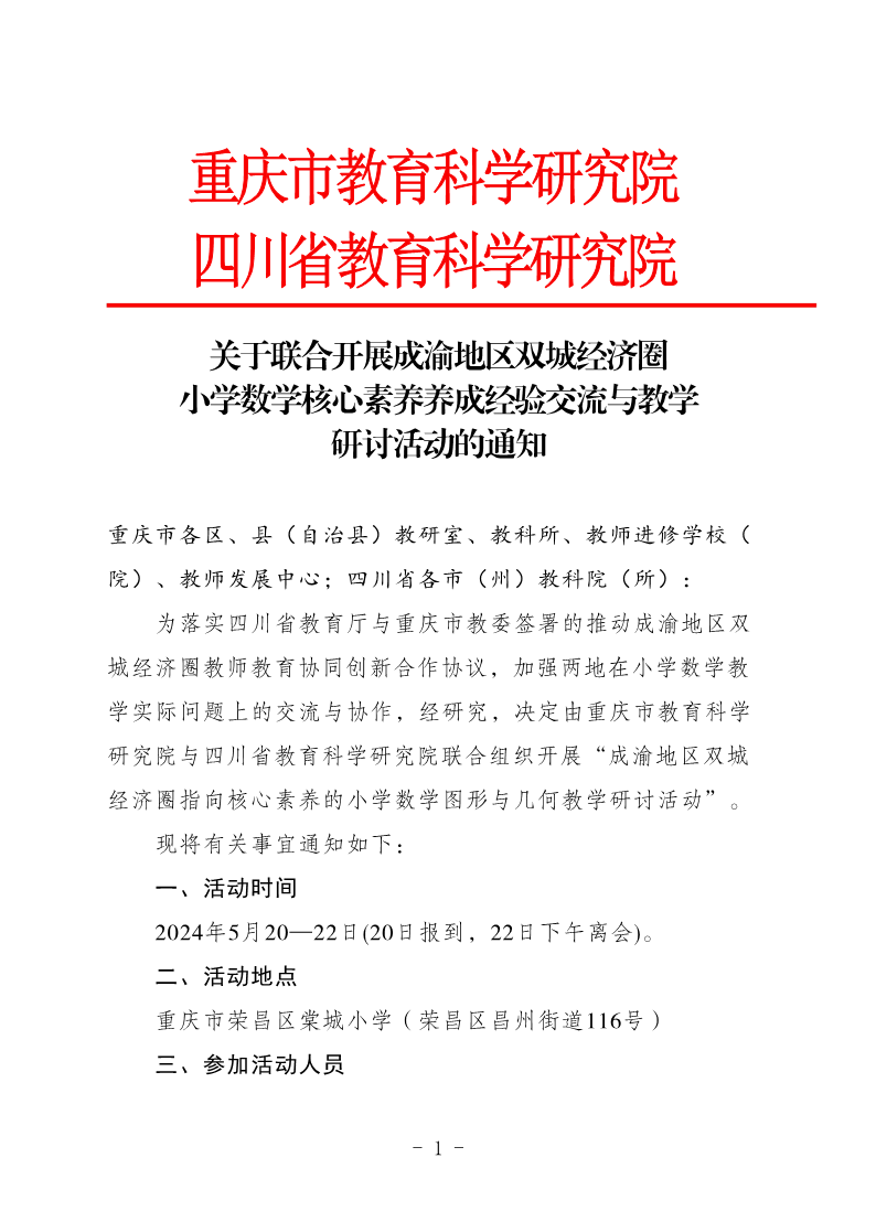 关于联合开展成渝地区双城经济圈小学数学核心素养养成经验交流与教学研讨活动的通知