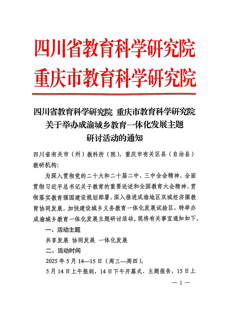 四川省教育科学研究院 利乐娱乐 关于举办成渝城乡教育一体化发展主题研讨活动的通知