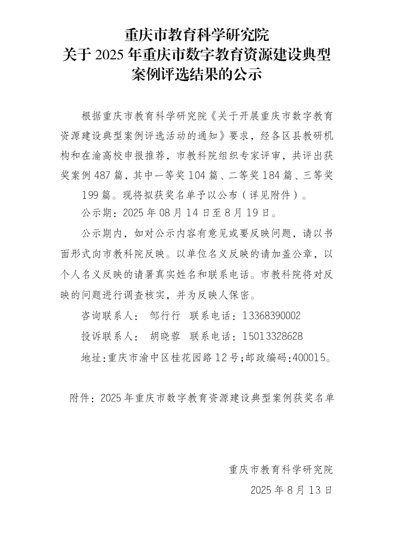 利乐娱乐 关于2025年重庆市数字教育资源建设典型案例评选结果的公示