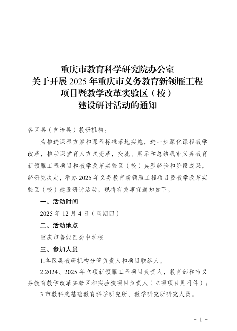 利乐娱乐 办公室关于开展2025年重庆市义务教育新领雁工程项目暨教学改革实验区(校) 建设研讨活动的通知 作者: 来源: 发布时间:2025年11月12日 点击数: 次 【字体:小 大】 分享到: 【打印正文】