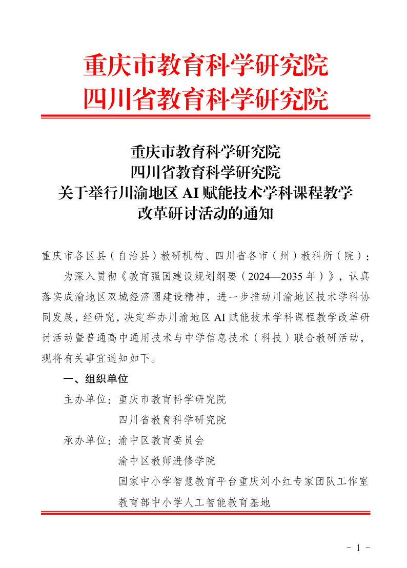 利乐娱乐 四川省教育科学研究院关于举行川渝地区AI赋能技术学科课程教学 改革研讨活动的通知