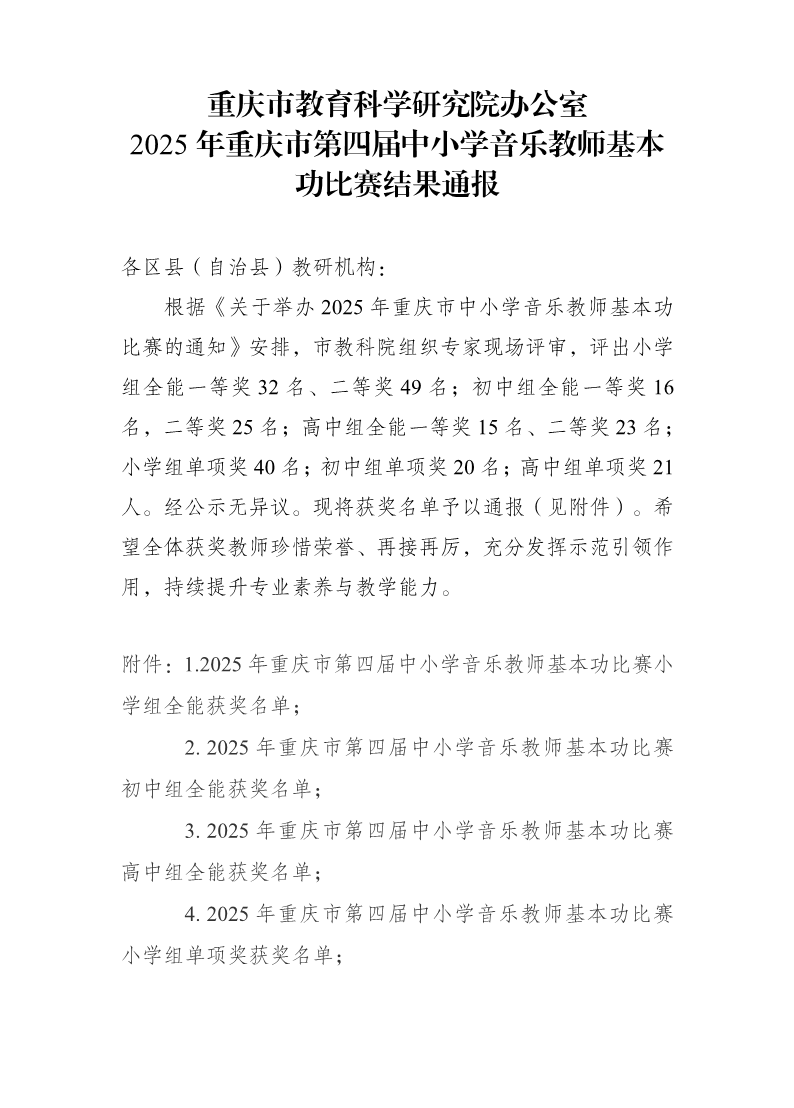 利乐娱乐 办公室2025年重庆市第四届中小学音乐教师基本功比赛结果通报