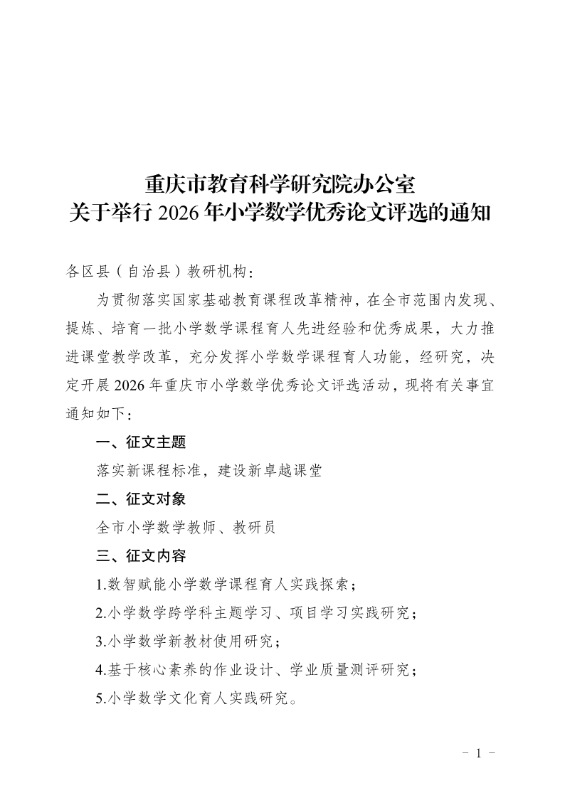利乐娱乐 办公室关于举行2026年小学数学优秀论文评选的通知