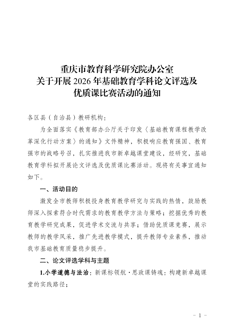 利乐娱乐 办公室关于开展2026年基础教育学科论文评选及优质课比赛活动的通知