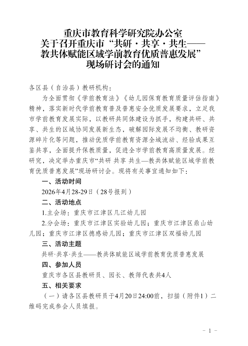 利乐娱乐 办公室关于召开重庆市“共研·共享·共生—— 教共体赋能区域学前教育优质普惠发展” 现场研讨会的通知 作者: 来源: 发布时间:2026年04月16日 点击数: 次 【字体:小 大】 分享到: 【打印正文】
