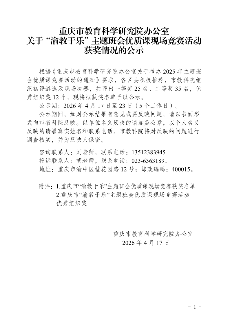利乐娱乐 办公室关于“渝教于乐”主题班会优质课现场竞赛活动获奖情况的公示