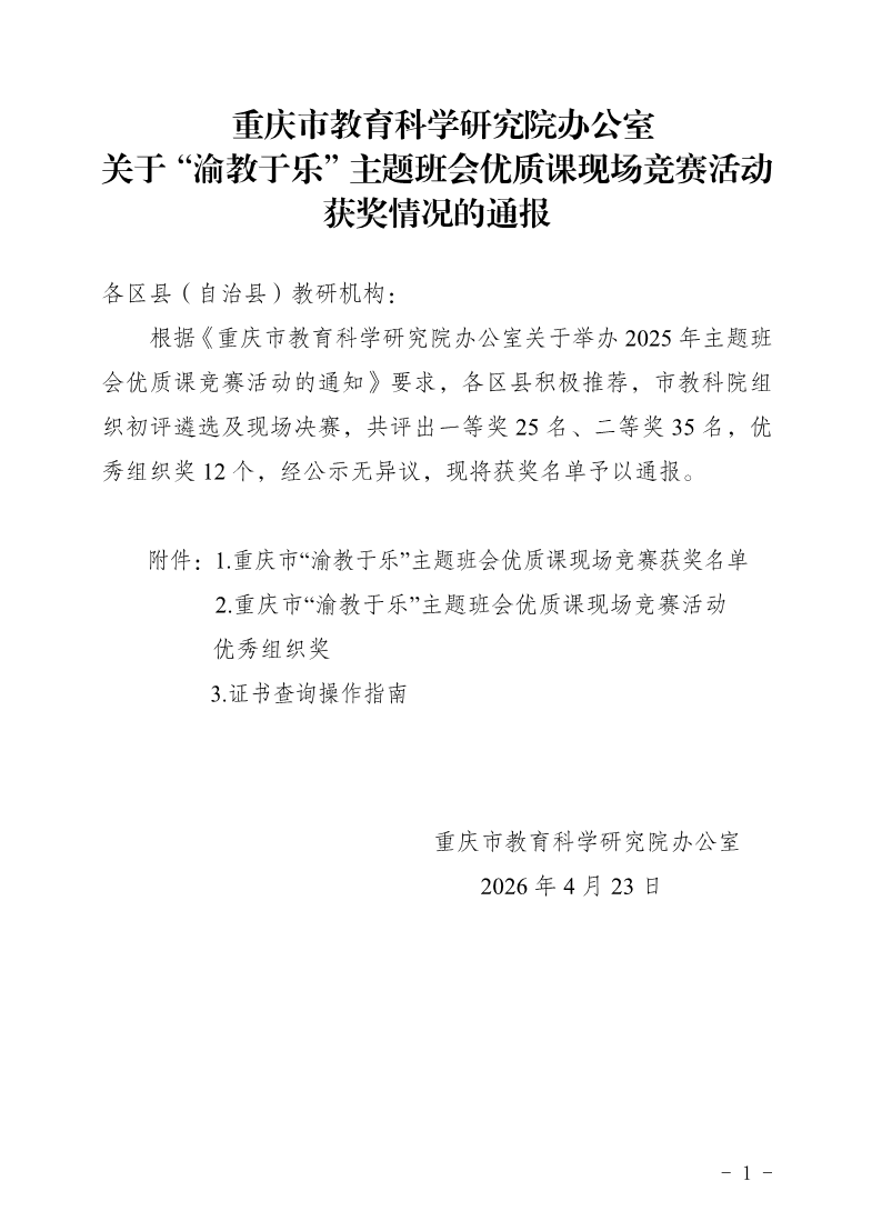 利乐娱乐 办公室关于“渝教于乐”主题班会优质课现场竞赛活动获奖情况的通报