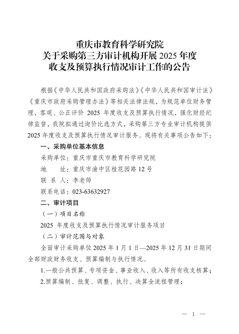利乐娱乐 关于采购第三方审计机构开展2025年度收支及预算执行情况审计工作的公告