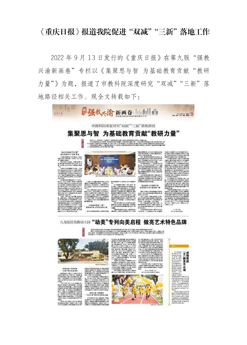 《重庆日报》报道利乐娱乐 促进“双减”“三新”落地工作